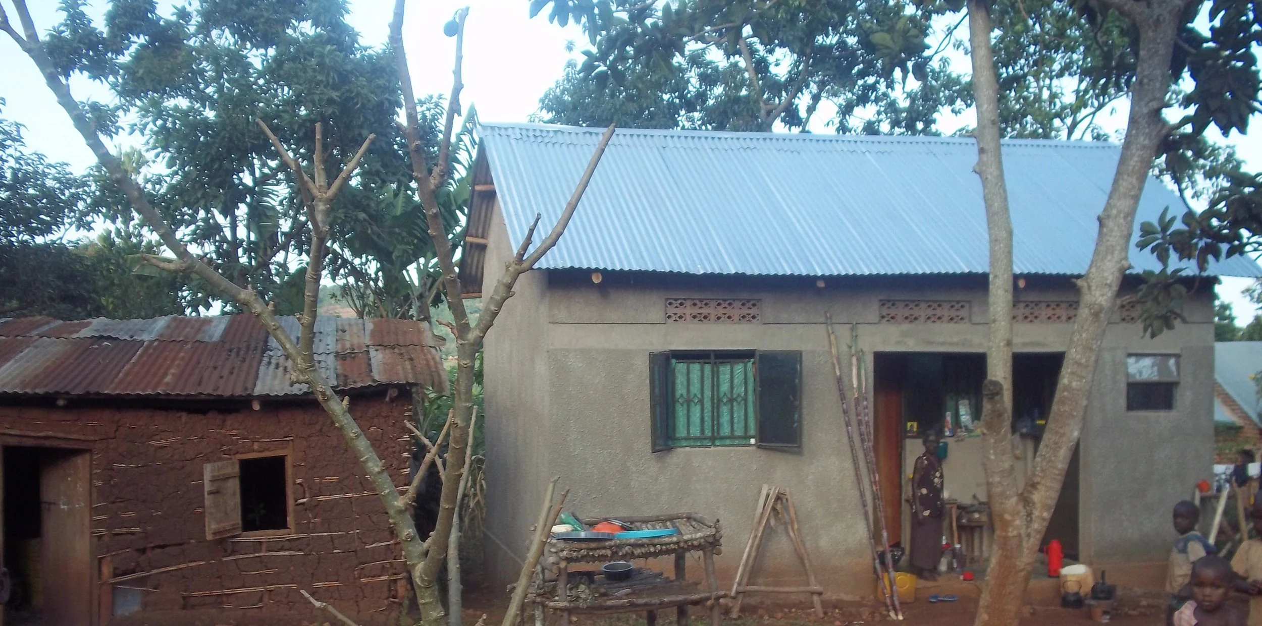 She has gone on to run a shop from her house and, with the profits, built a new home. In the pictures below, her old house is on the left, and she is standing at the doorway of her new one (on the right).