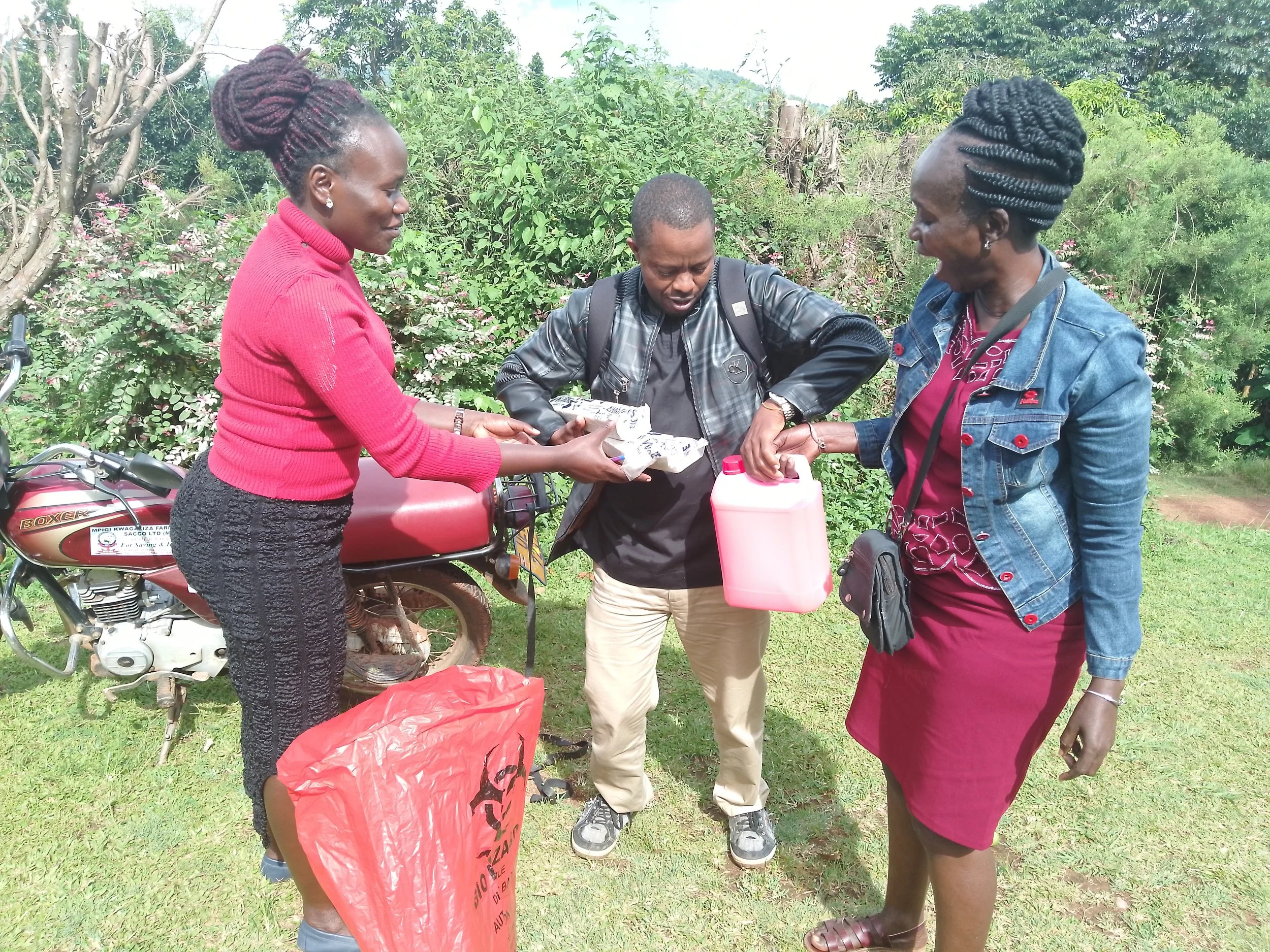 Finished product being distributed by motorbike - the only viable transport